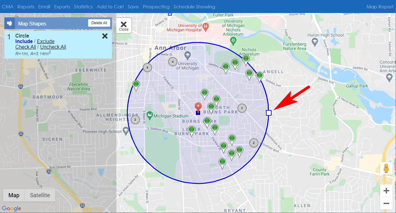 To quickly run a radius search using the Interactive Map Search, follow these steps:
